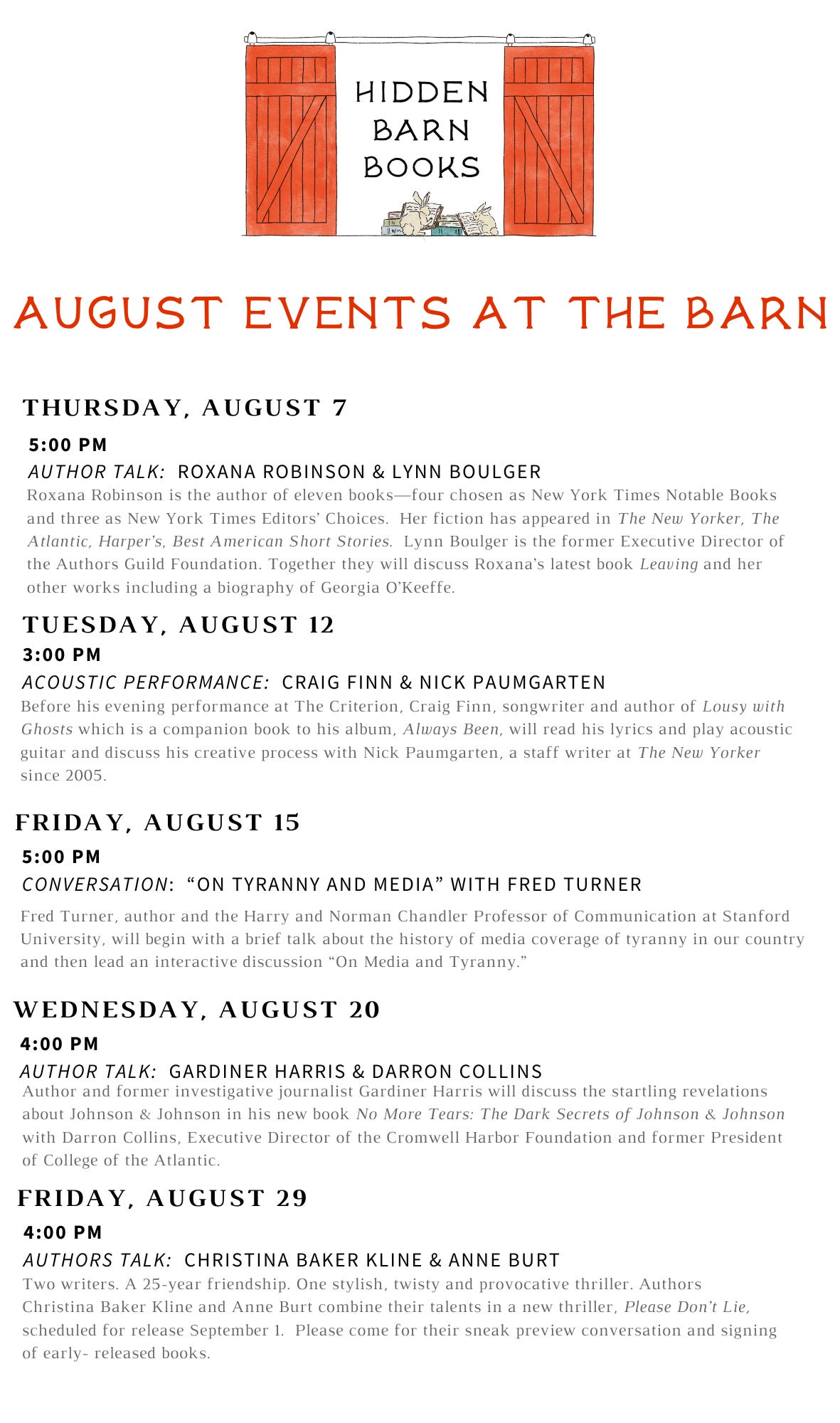 AUGUST EVENTS AT HIDDEN BARN BOOKS IN BAR HARBOR!Aug 02, 2025ShareSubscribeShareLeave a commentPreviousNext