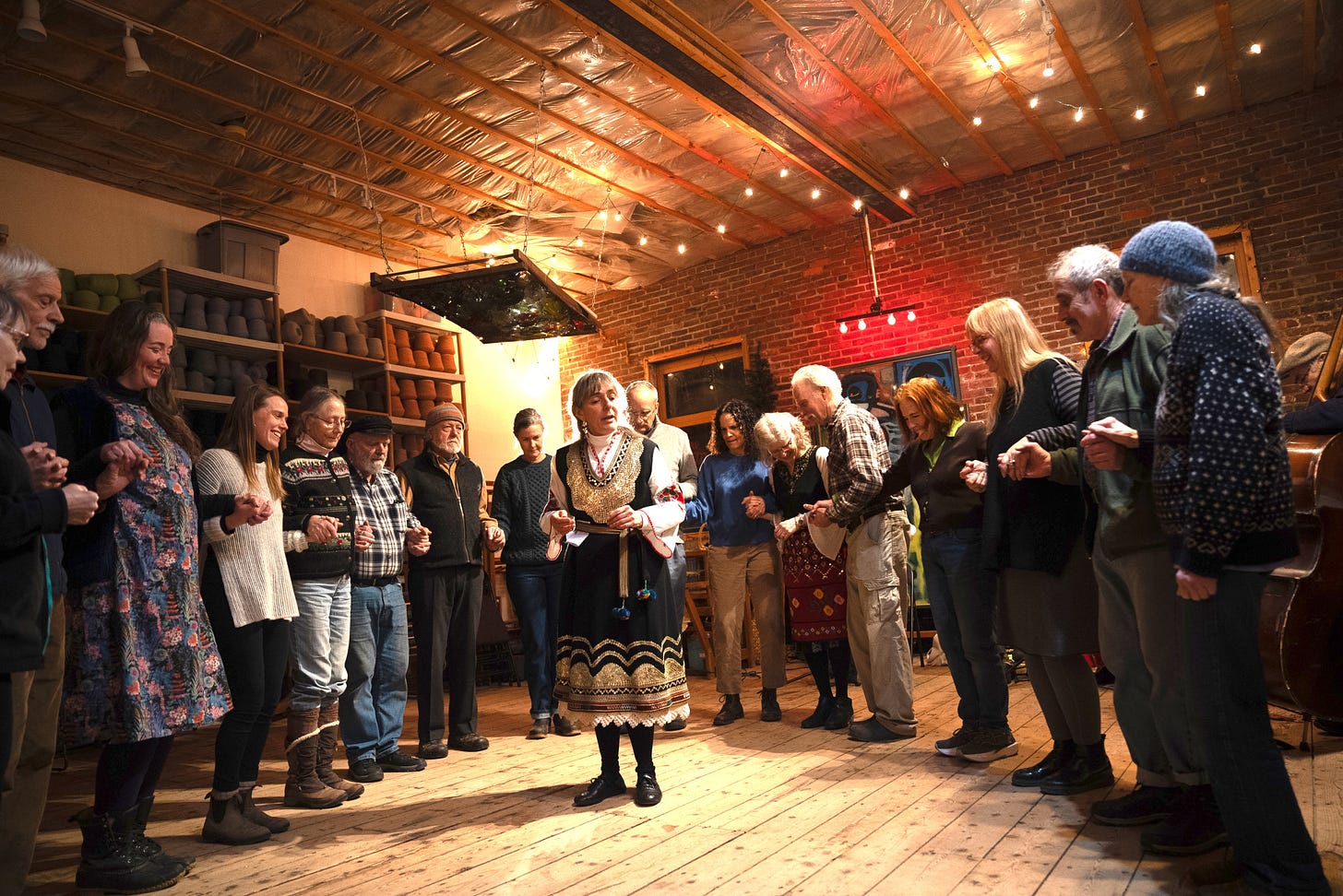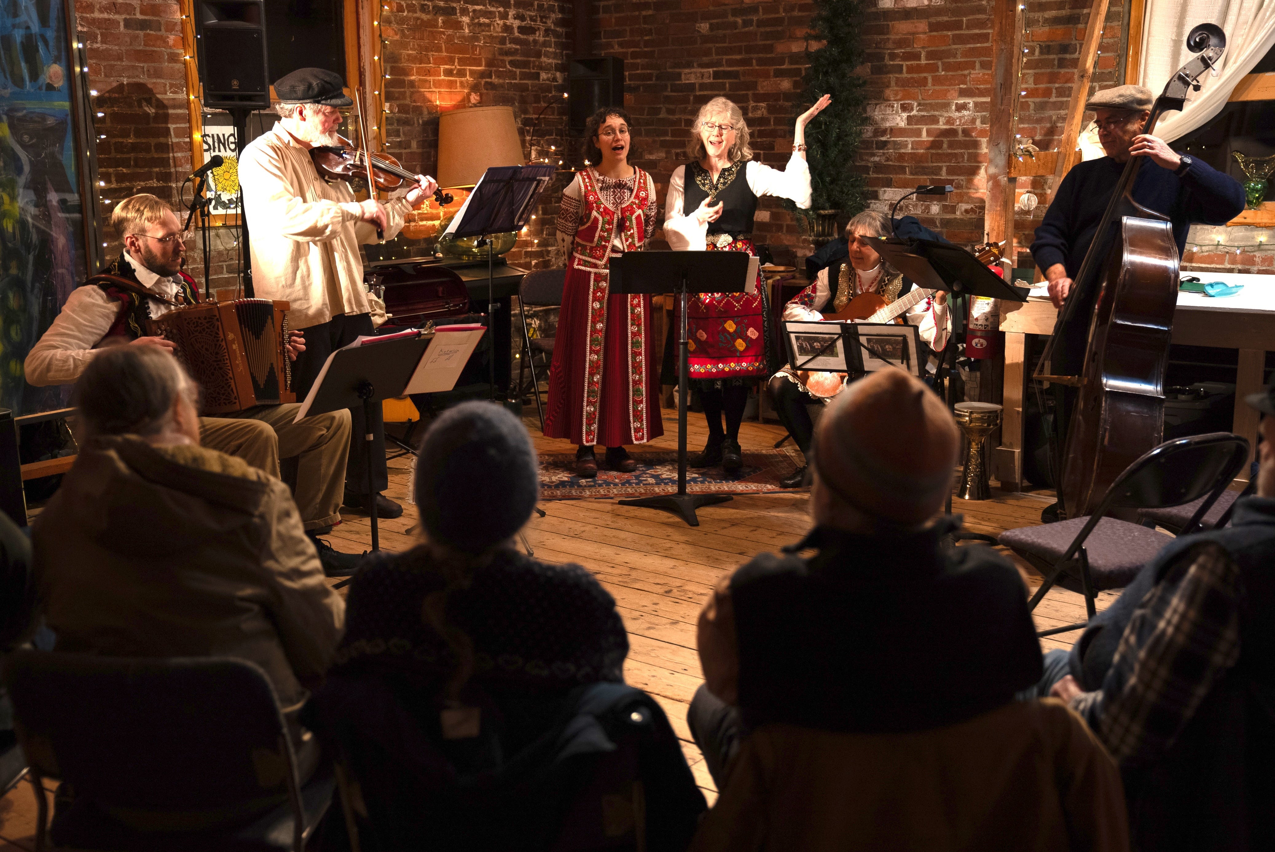 To expand the band's repertoire, Swedish fiddler Goran Olson provided a master class in Swedish music last year. Following his instruction, the band began a series of themed dances monthly. They celebrated Swedish Santa Lucia Day at the dance in December, "a trip to the Greek islands" in January, "campfire dances" celebrating the February holiday in Armenia of jumping over the fire for rejuvenation, the Bulgarian Baba Marta holiday in March, and a Polish May Day with dances from each of these cultures.