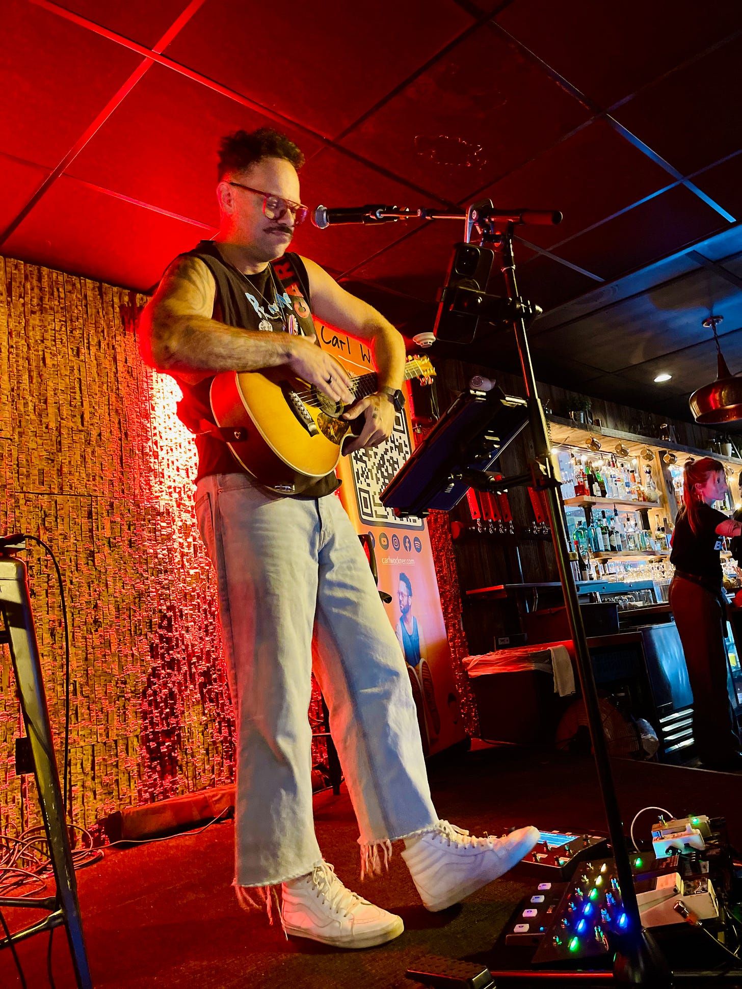 Women at the bar’s closer end to the stage wrapped their arms around each other as Wockner launched into a Taylor Swift cover. People by the door swayed. Hands held up everywhere—all recording.
