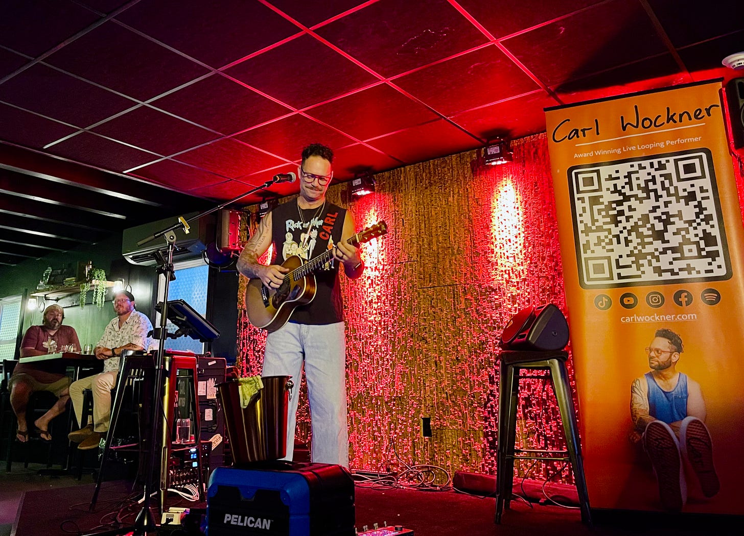 Learn and Create wrote, “What makes Carl different from most musical performers is his ability to use live looping gear to create multiple instrumental tracks within each song while performing in front of a live audience. Using a special looping pedal, he singlehandedly creates all of the musical parts during a show: the lead vocal, harmonies, bass, guitar, keys, and even drum beats. With each repeating loop using only his voice and small body Maton guitar, he creates different instrumental layers as he plays, building what eventually sounds like a full live band performance.”