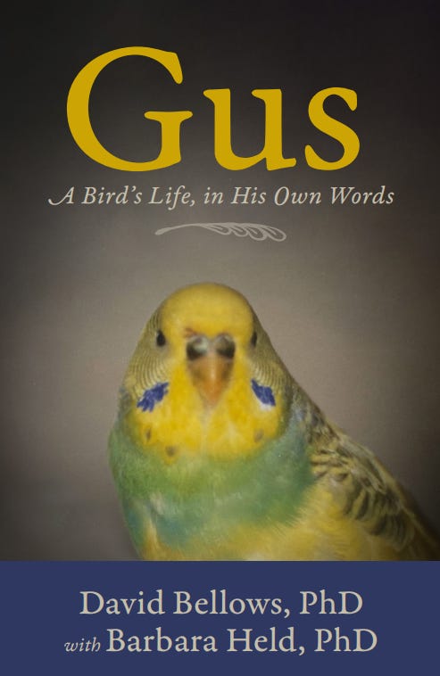 BAR HARBOR – Gus is a heartwarming, funny love story about how a psychologist who initially rejected the 1.4-ounce pet parakeet his wife insisted on adopting ultimately wanted Gus to live beyond his all-too-brief five years. Gus’s uncanny words of wisdom—though sometimes making the psychologist look bad to others—helped his therapy patients, himself, and his wife in remarkable ways.
