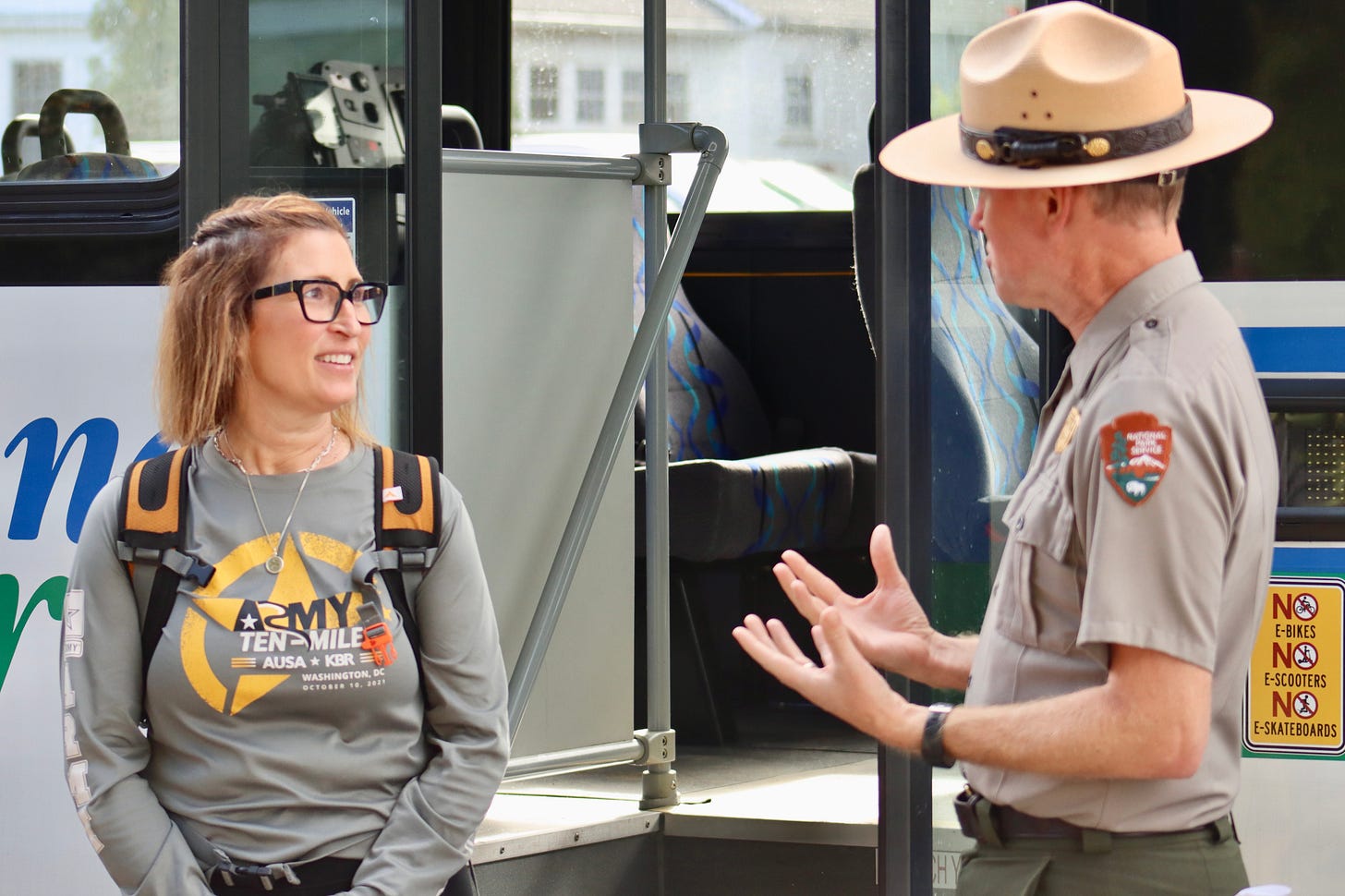 Deputy Superintendent Brandon Bies and Acadia’s Management Assistant John Kelly, helped greet Ms. Gearhart.