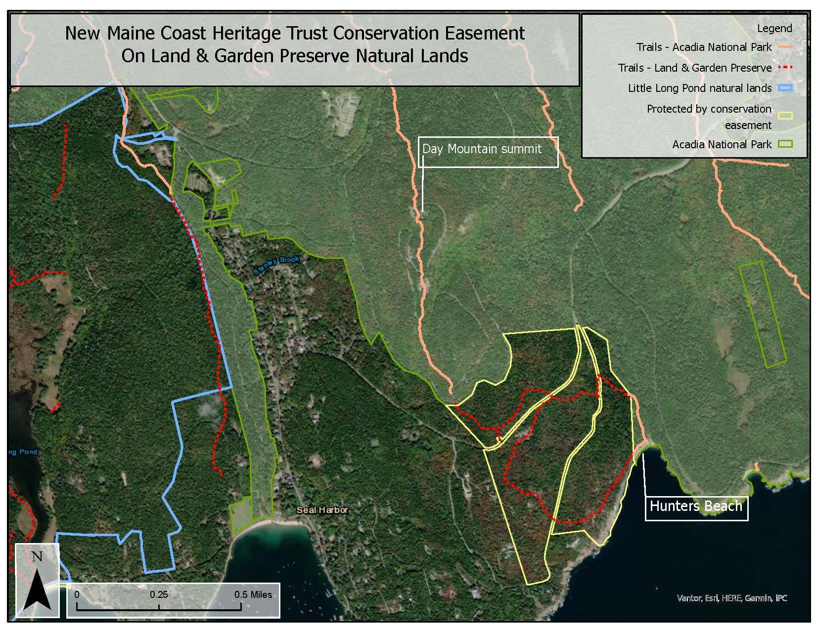 The newly protected land serves as a critical buffer to Acadia National Park at Hunters Beach and Day Mountain, protecting the park’s scenic and ecological values from future development.