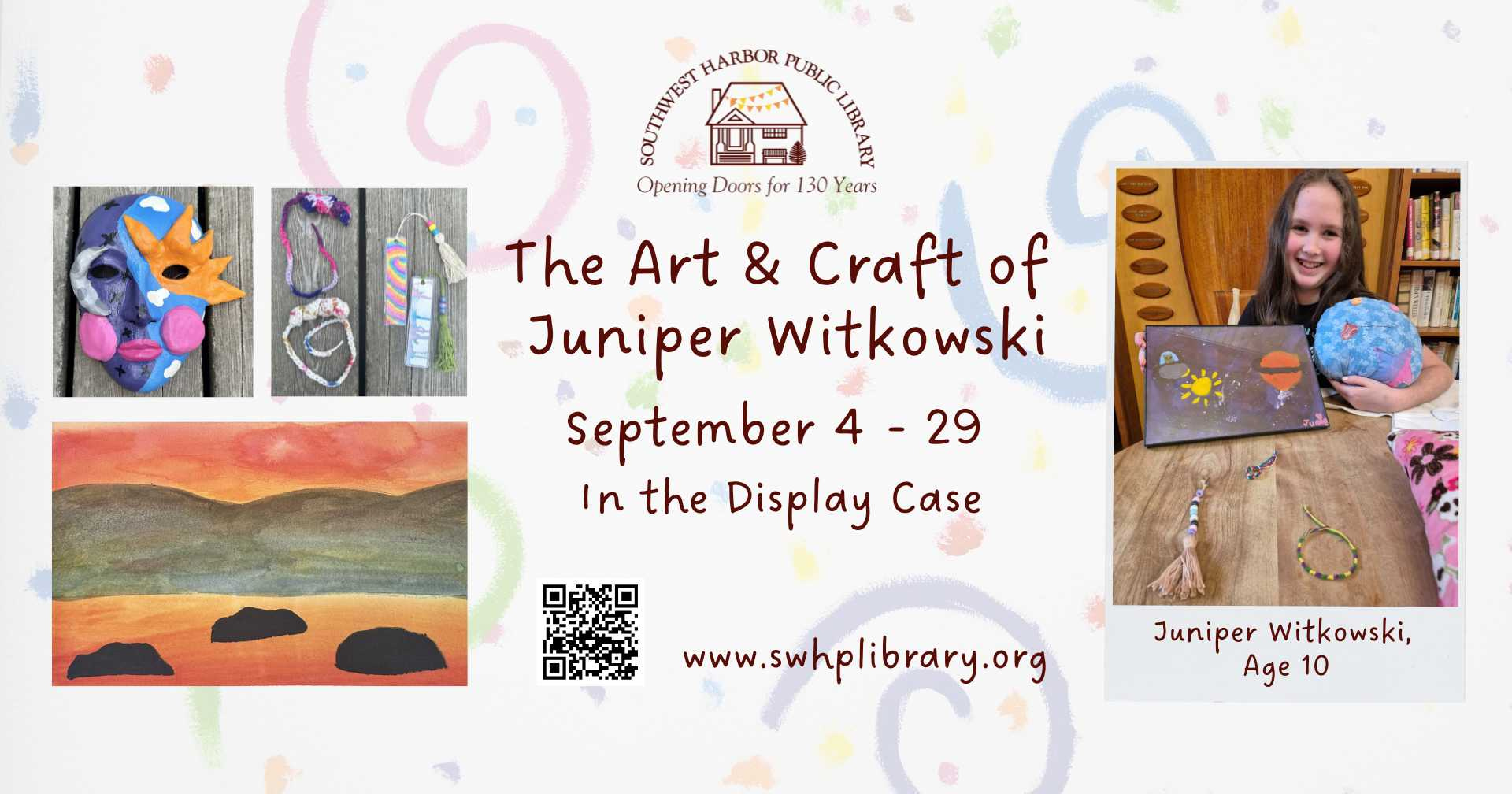 For questions or for more information call the Library at 207-244-7065, visit https://tinyurl.com/m4vvft2r, or email exhibits@swhplibrary.org