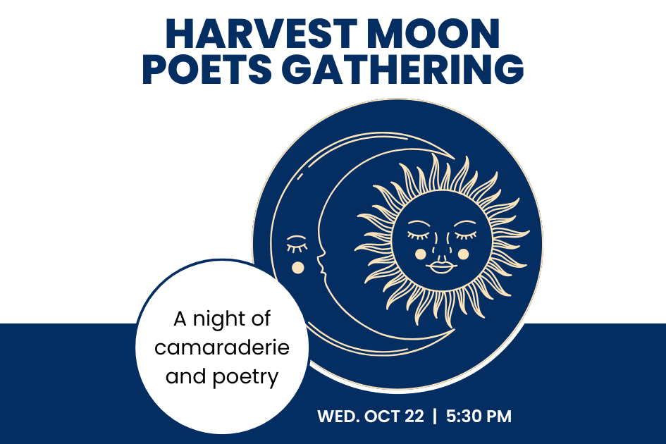 The third in a series of seasonal poetry events created through a collaboration between Northeast Harbor Library and Southwest Harbor Public Library, the Harvest Moon Poets Gathering is free and open to all. Participants are invited to read their original work, beloved poems from their favorite authors, or simply enjoy the performance of their peers. This event is an opportunity to celebrate each other’s creativity, Gathering events are an open-mic format with time to sign up at the start.