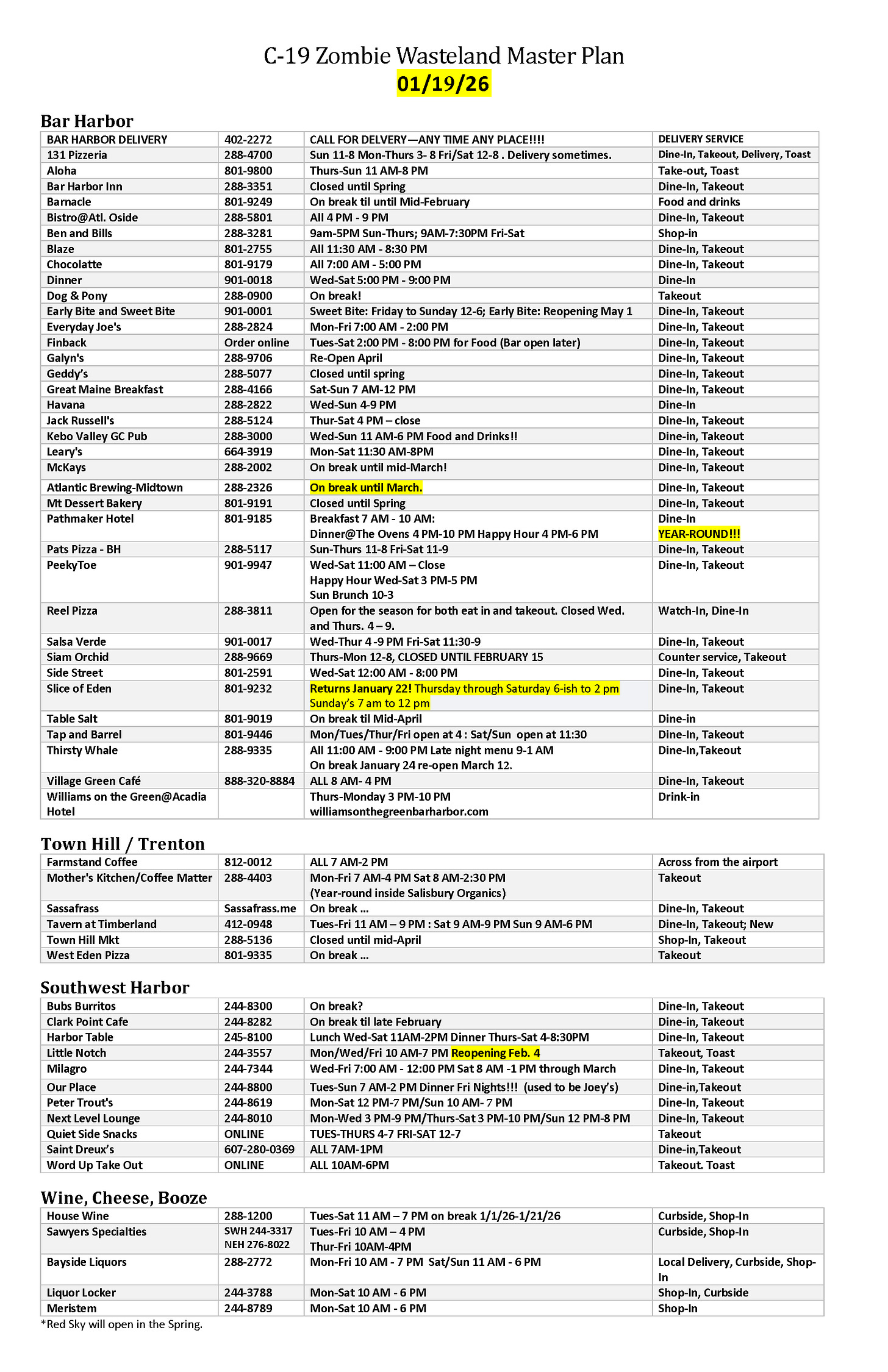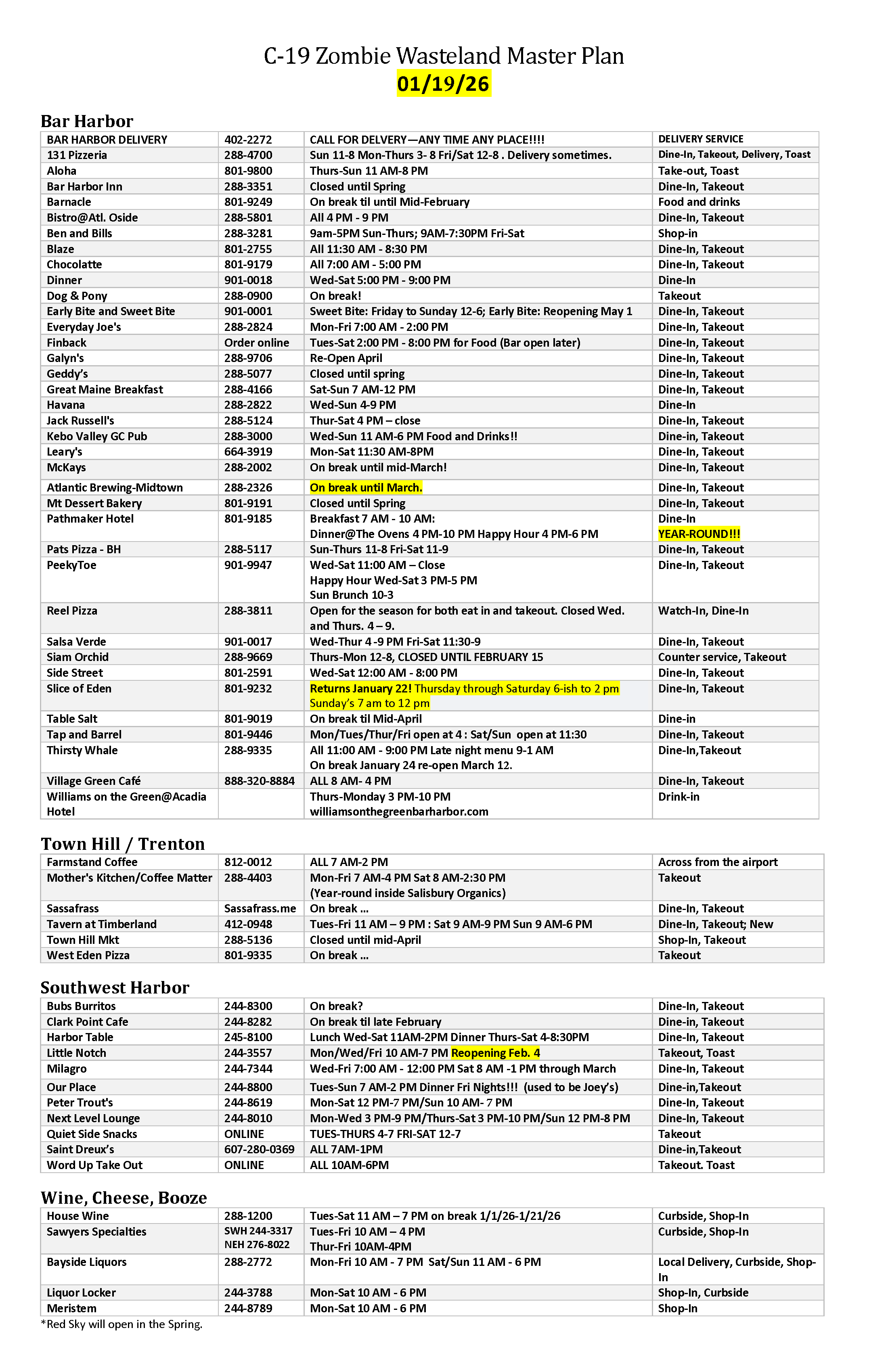 Jennifer at First Express in Bar Harbor compiles and updates a list of restaurants every year. You can enlarge the image to peruse.