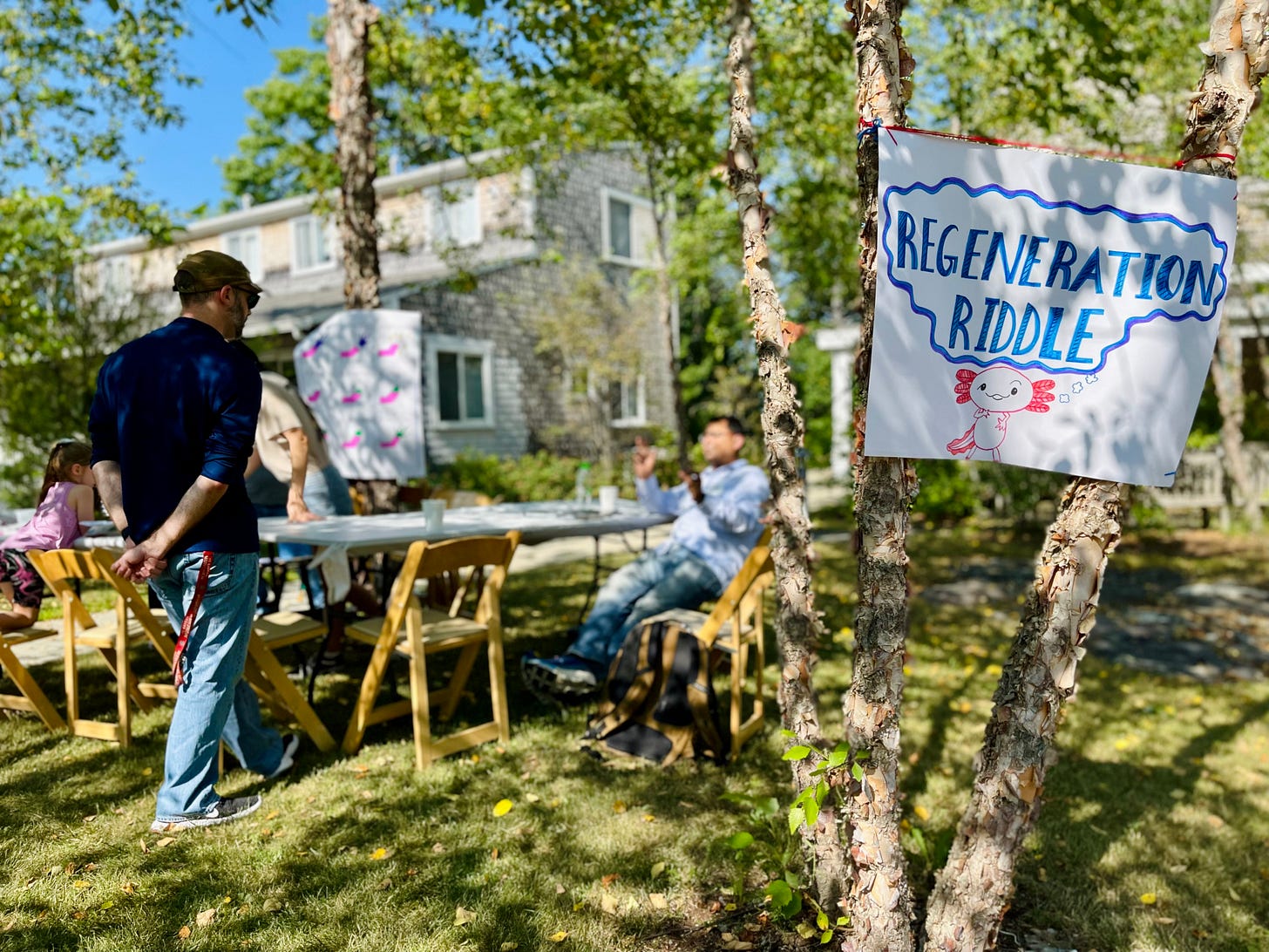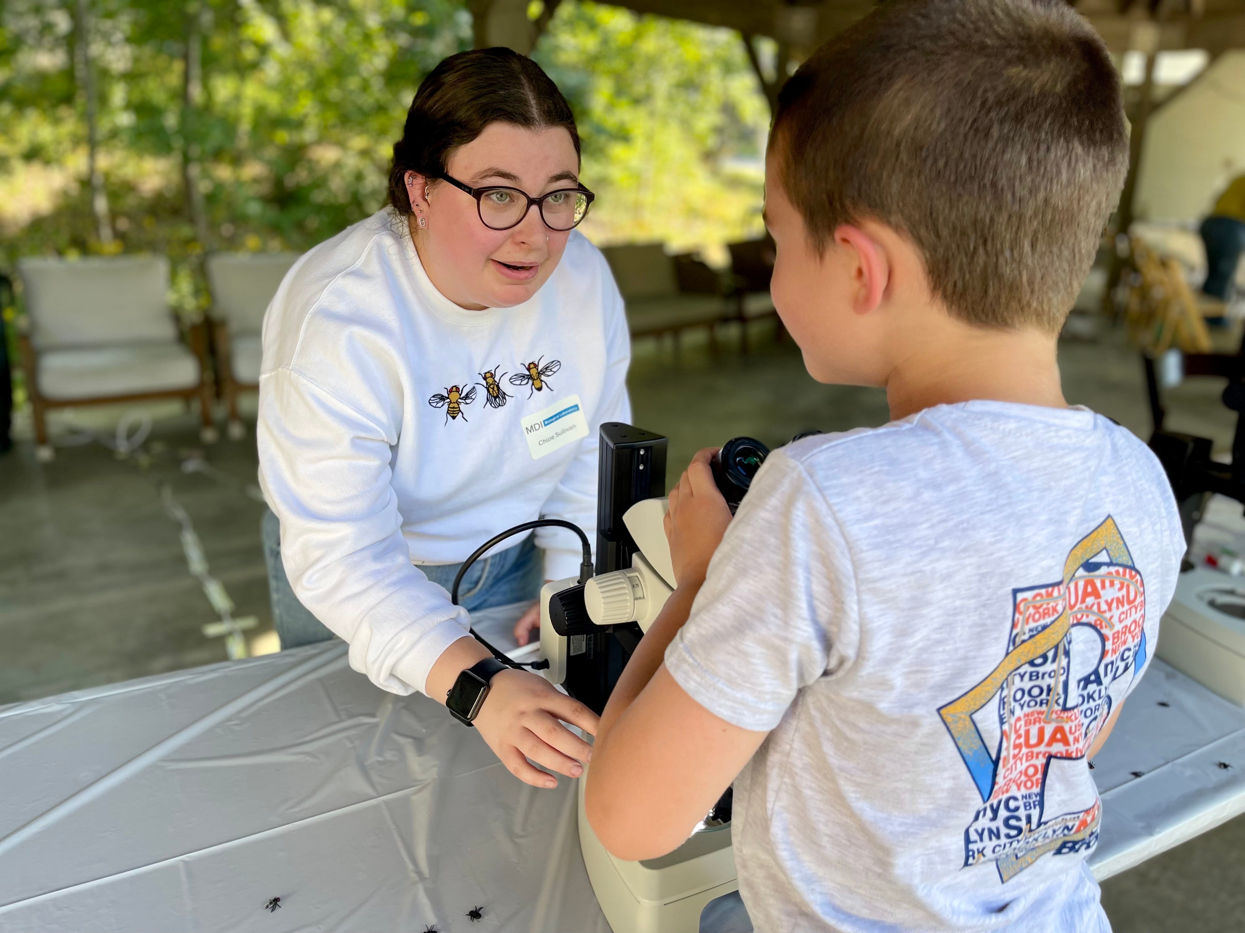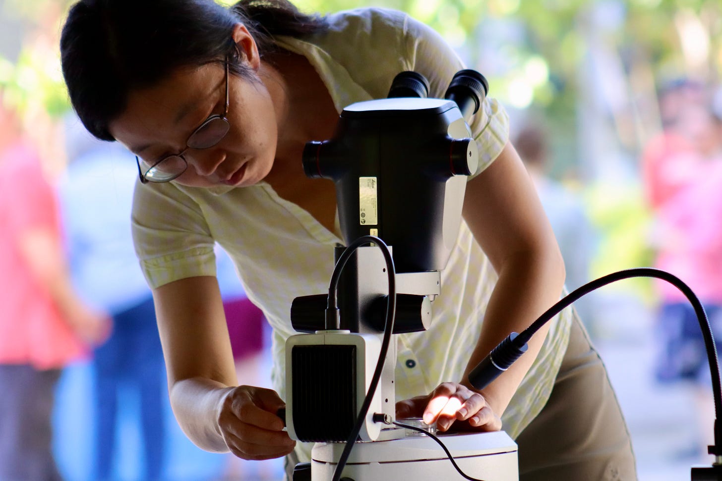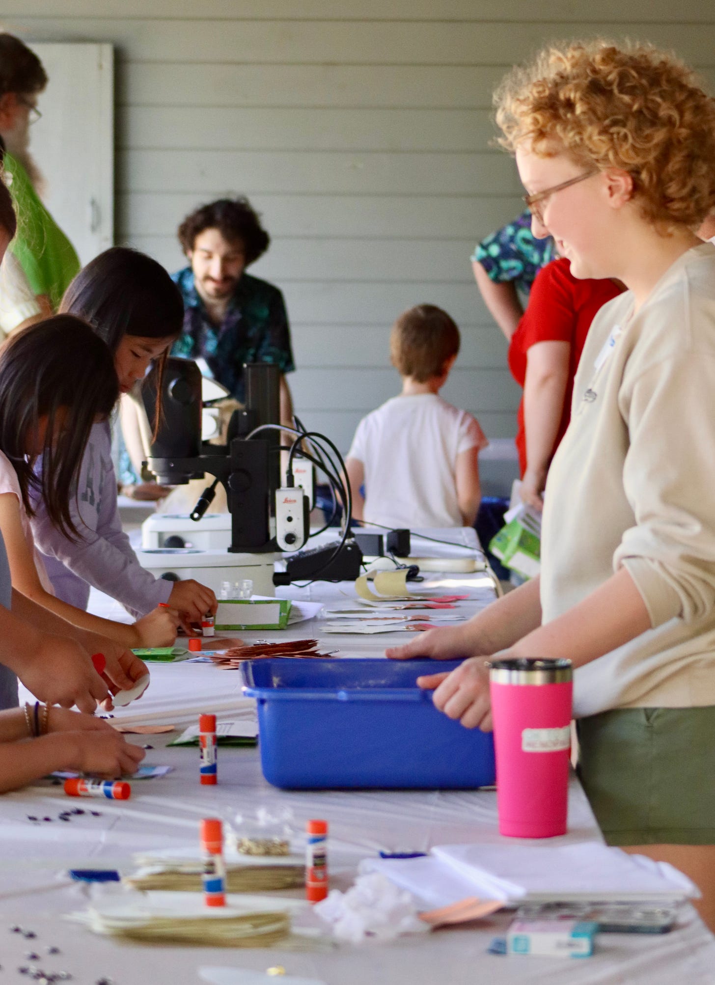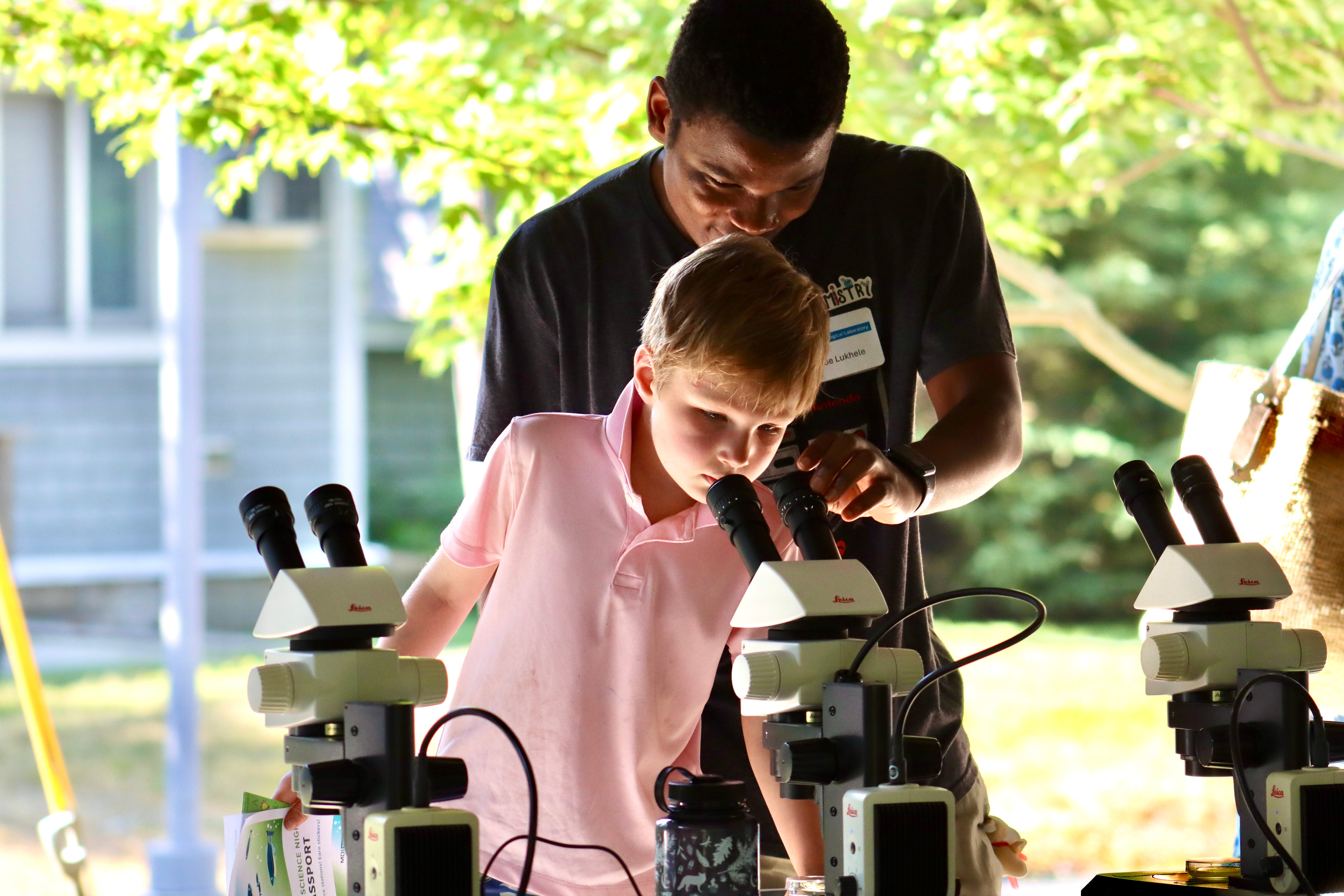 Across the lawn, a small girl rattled a big plastic bucket full of marbles to simulate the work of the kidney. Others peered into microscopes, touched starfish, colored, and learned.