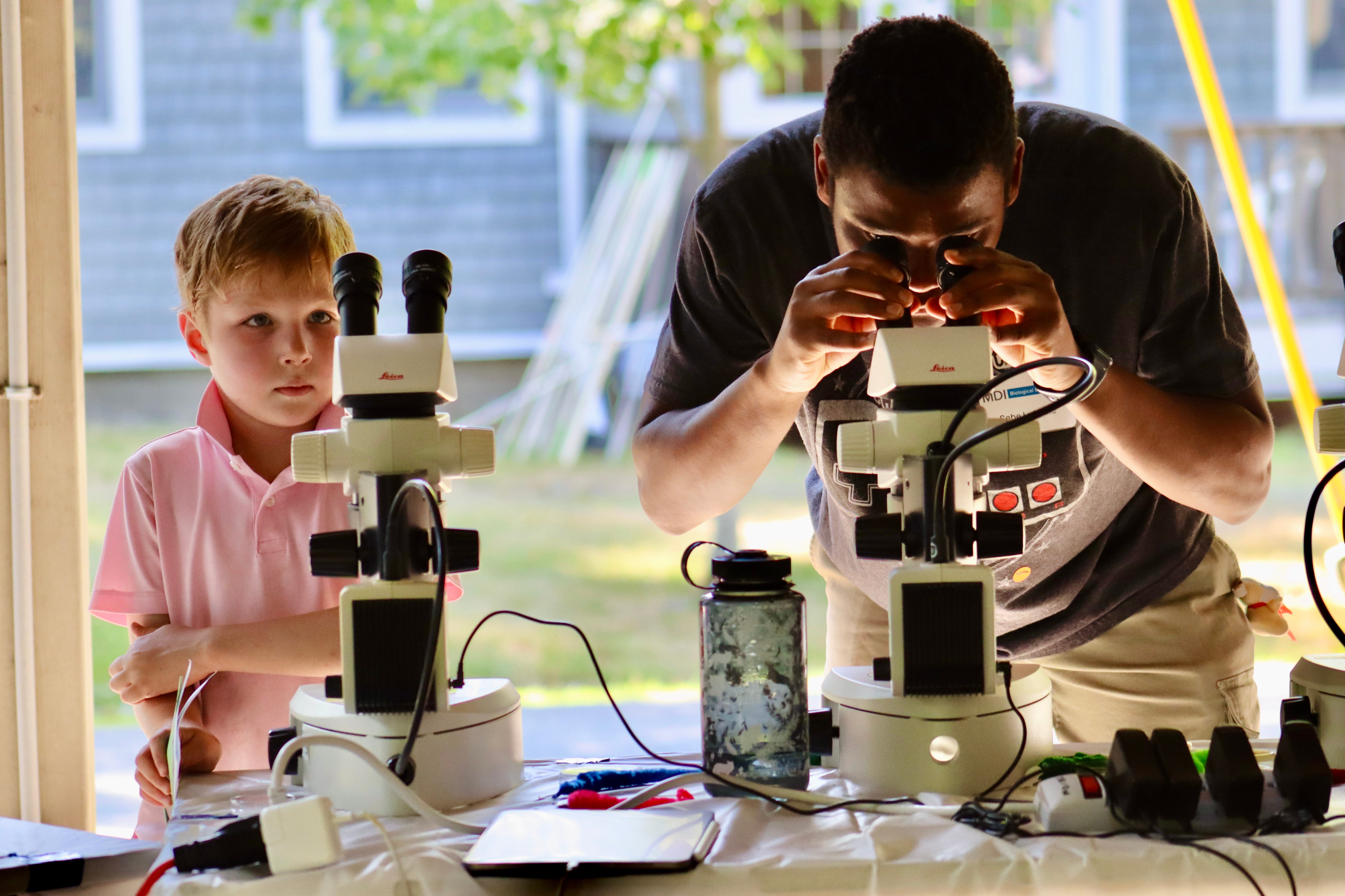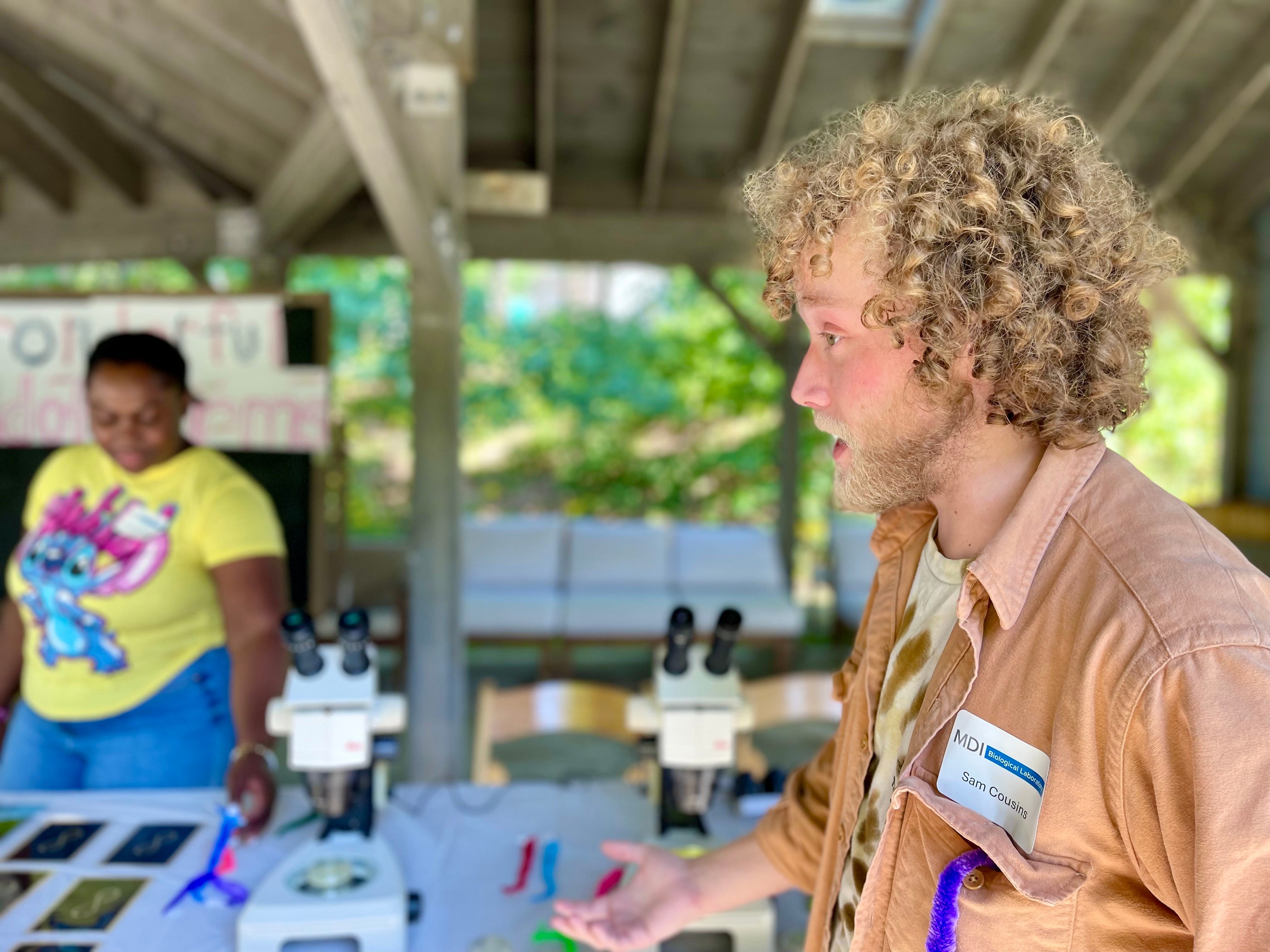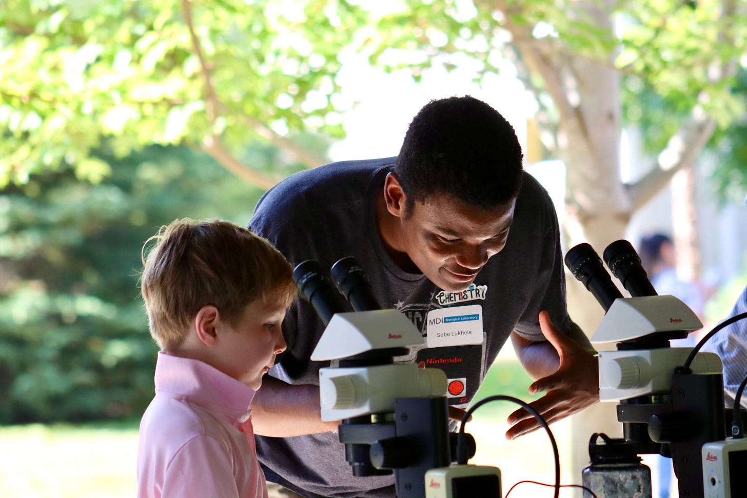 BAR HARBOR—Scientists at the MDI Biological Laboratory mingled with children on the lawn of its Salsbury Cove campus this week. They laughed, peered into microscopes, examined the properties of light, and touched rainbows. They also ate a bit of ice cream.