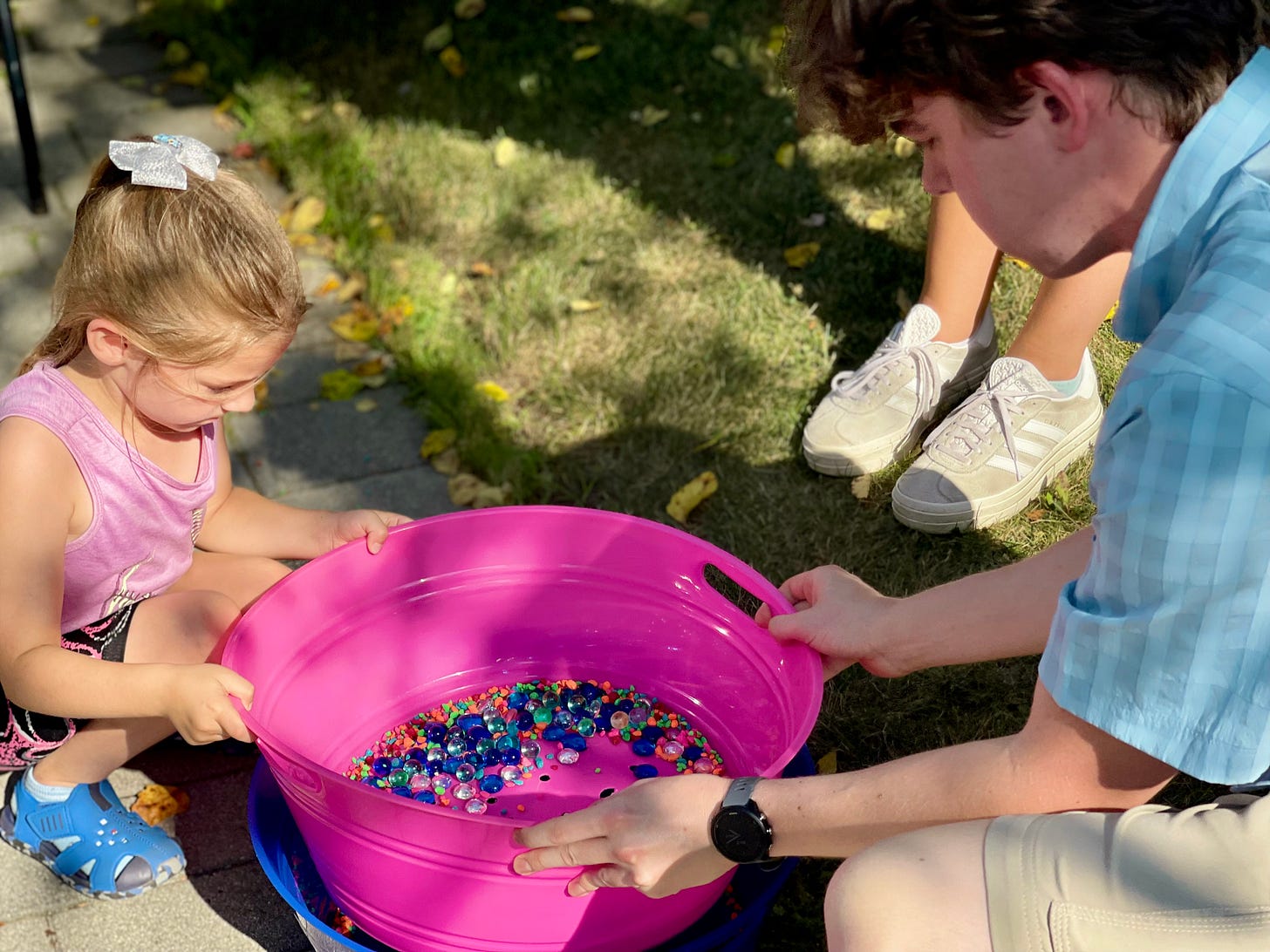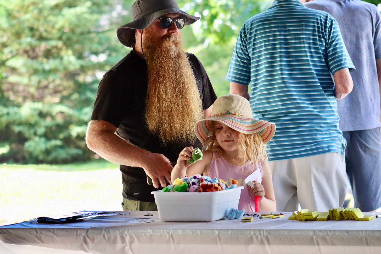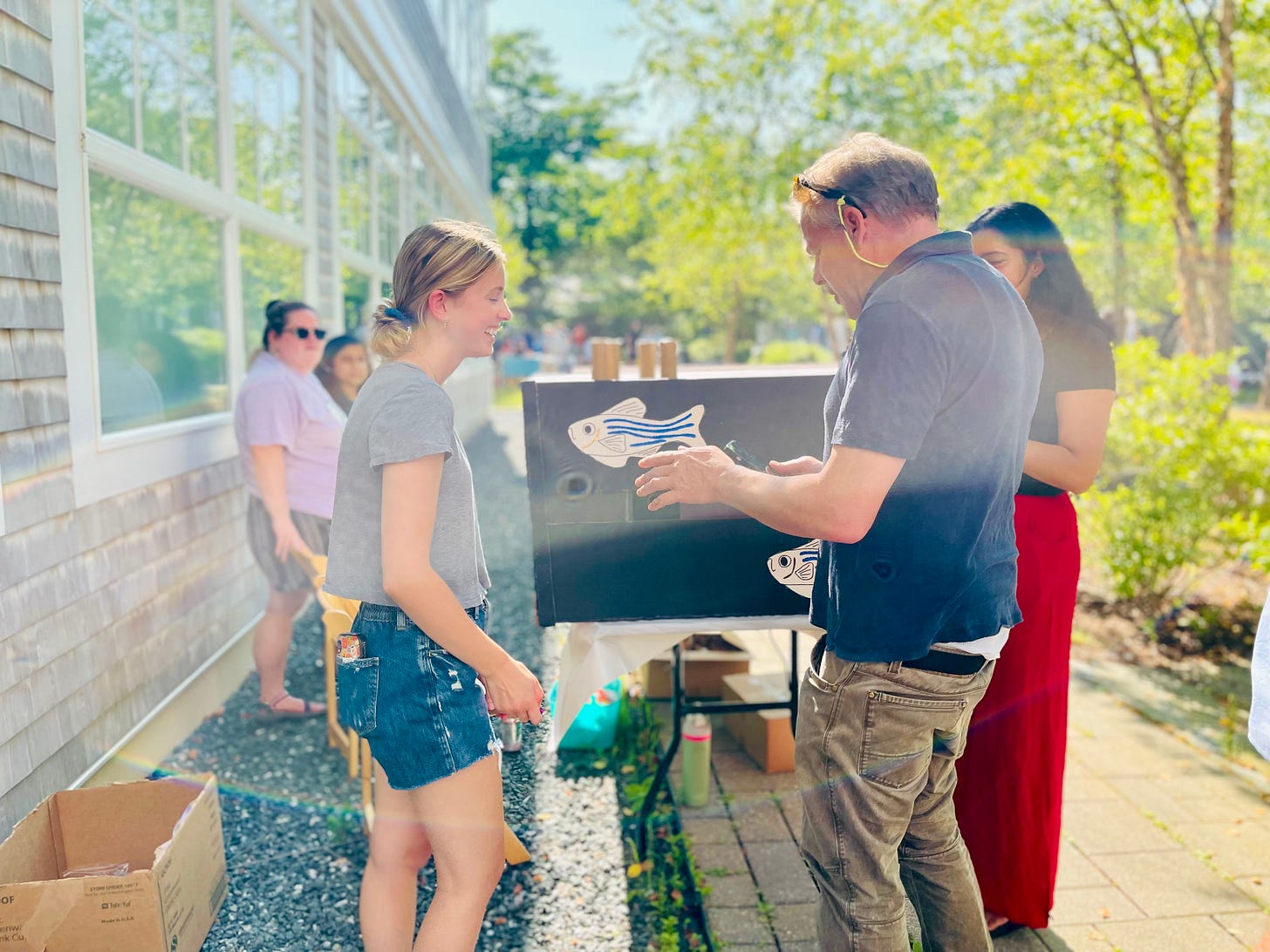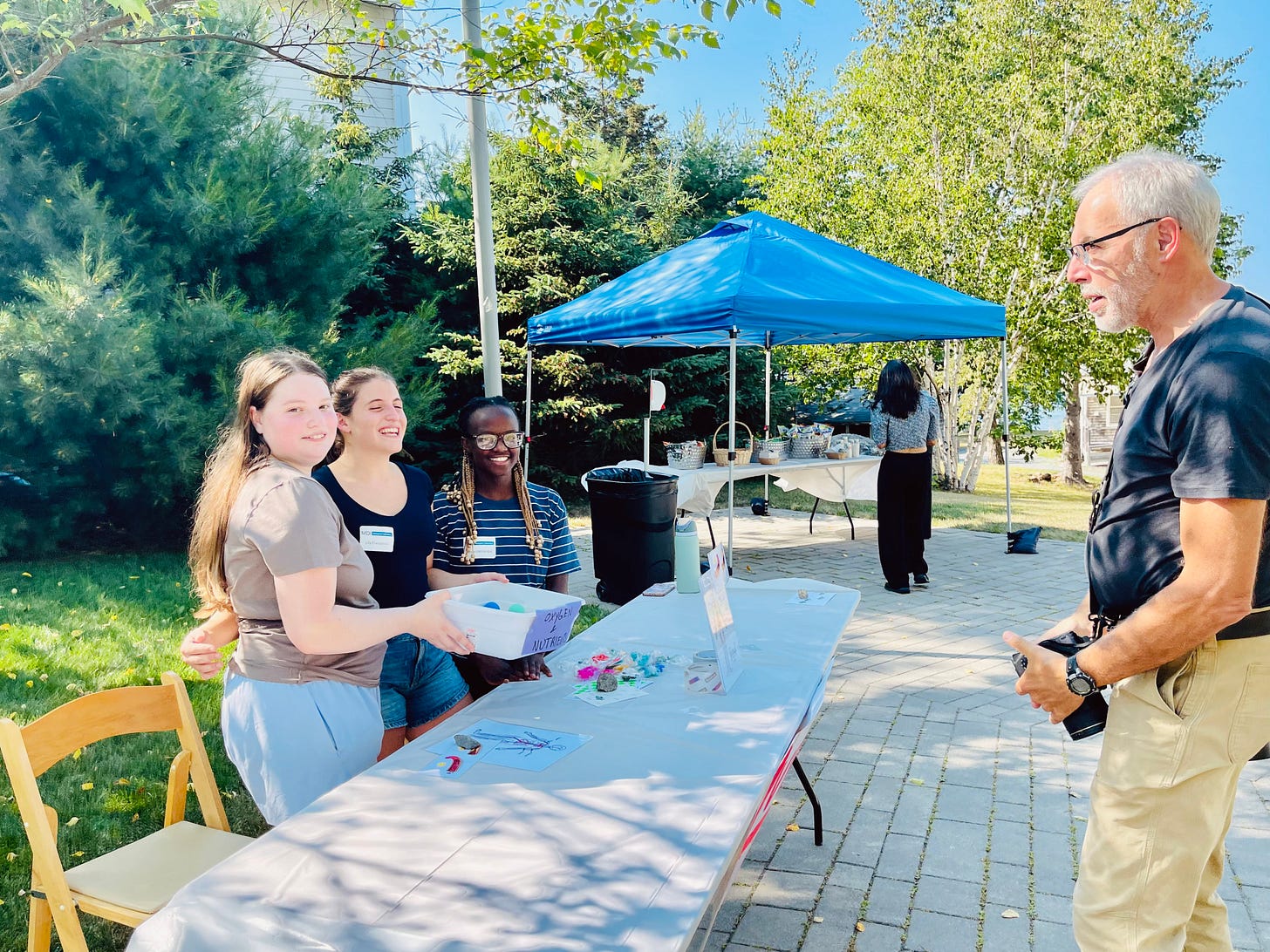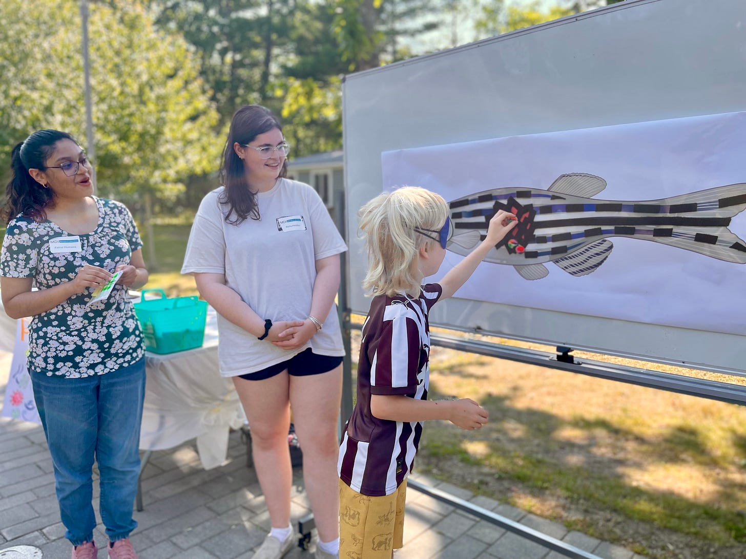 Nearby, Chloe Sullivan explained science equipment, equally enthusiastic. Reilly Hedden supervised a child (and then an octogenarian) trying to stick balls on a fish blindfolded.