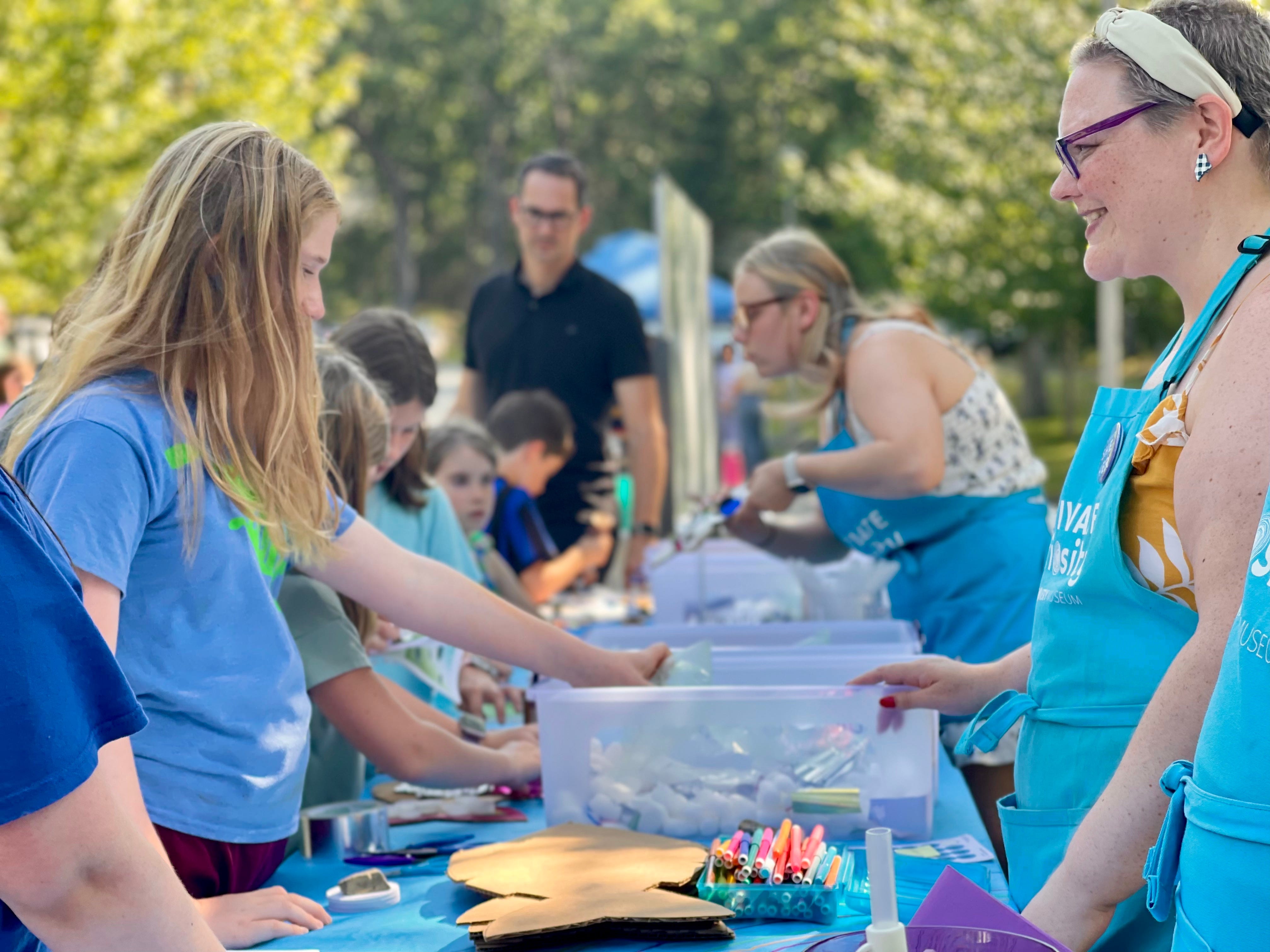 “Eventually it’s all going to wind up in rivers and go into the ocean so it’s really important that you don’t litter because that trash winds up in the ocean and then fishes eat it and microplastics get in our water and then we’re drinking plastic and it’s just bad,” one scientist from the Discovery Museum told kids at her table.