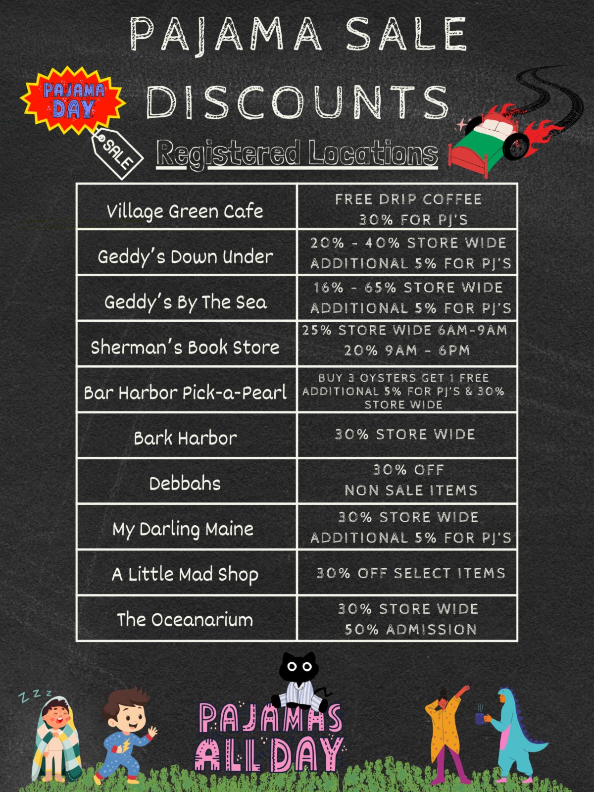 Pajama attire often earns discounts from participating shops.