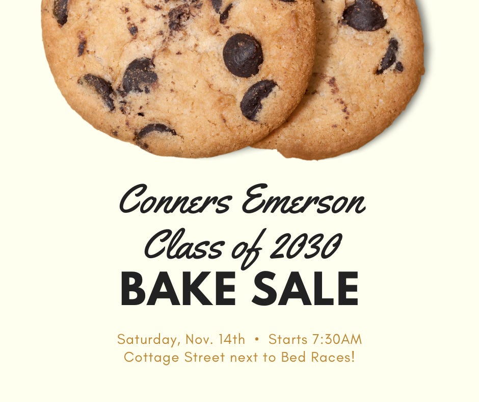 While you’re downtown for the Pajama Sale, be sure to stop by and support the Conners Emerson Class of 2030! The students will be raising funds for their whitewater rafting class trip with a baked goods sale right next to the chamber on Cottage Street.