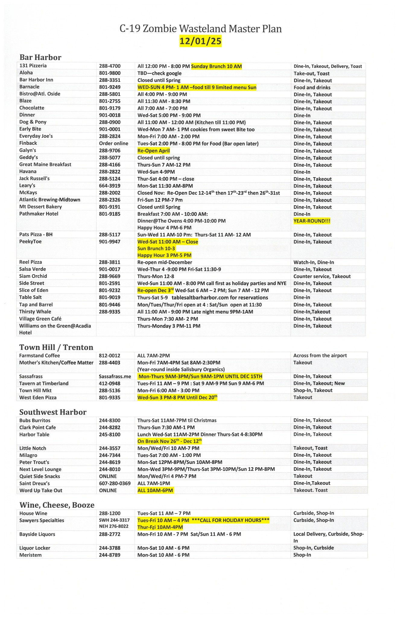 RESTAURANT LIST
